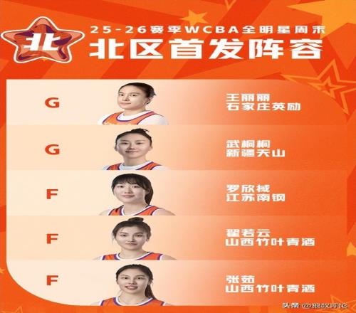 北区首发球员:王丽丽(石家庄英励)、武桐桐(新疆天山)、罗欣棫(江苏南钢)、翟若云(山西竹叶青酒)、张茹(山西竹叶青酒),武桐桐以134529票当选北区票王。