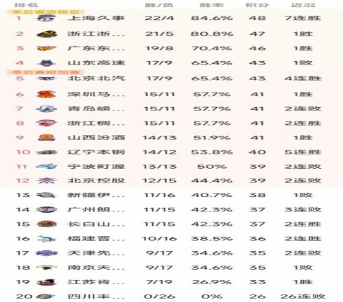 CBA最新积分榜