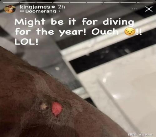 而就在今日,詹姆斯在Instagram上分享了自己膝盖的伤痕照片,并幽默地配文:“或许这就是那记年度最佳扑救的代价吧!好疼啊!!!哈哈哈。”