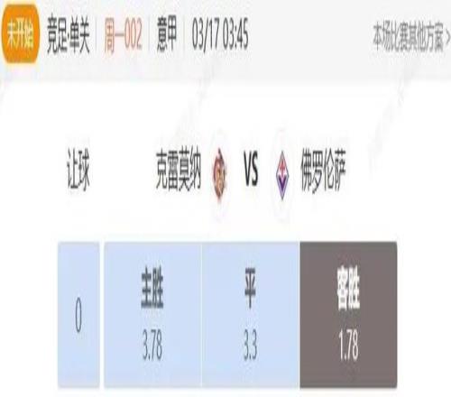 竞足 周一002 意甲 克雷莫纳VS佛罗伦萨