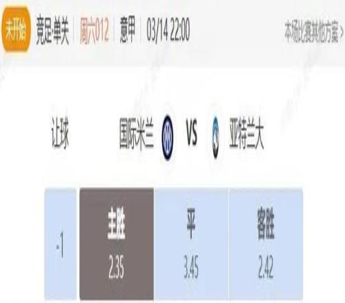 竞足 周六012 意甲 国际米兰VS亚特兰大